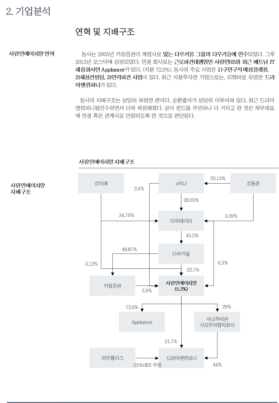 기업분석 - 사람인에이치알 연혁 및 지배구조