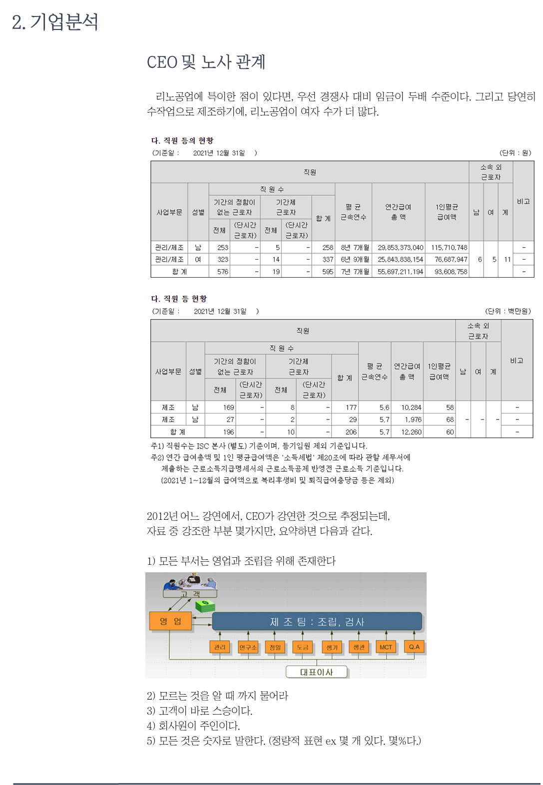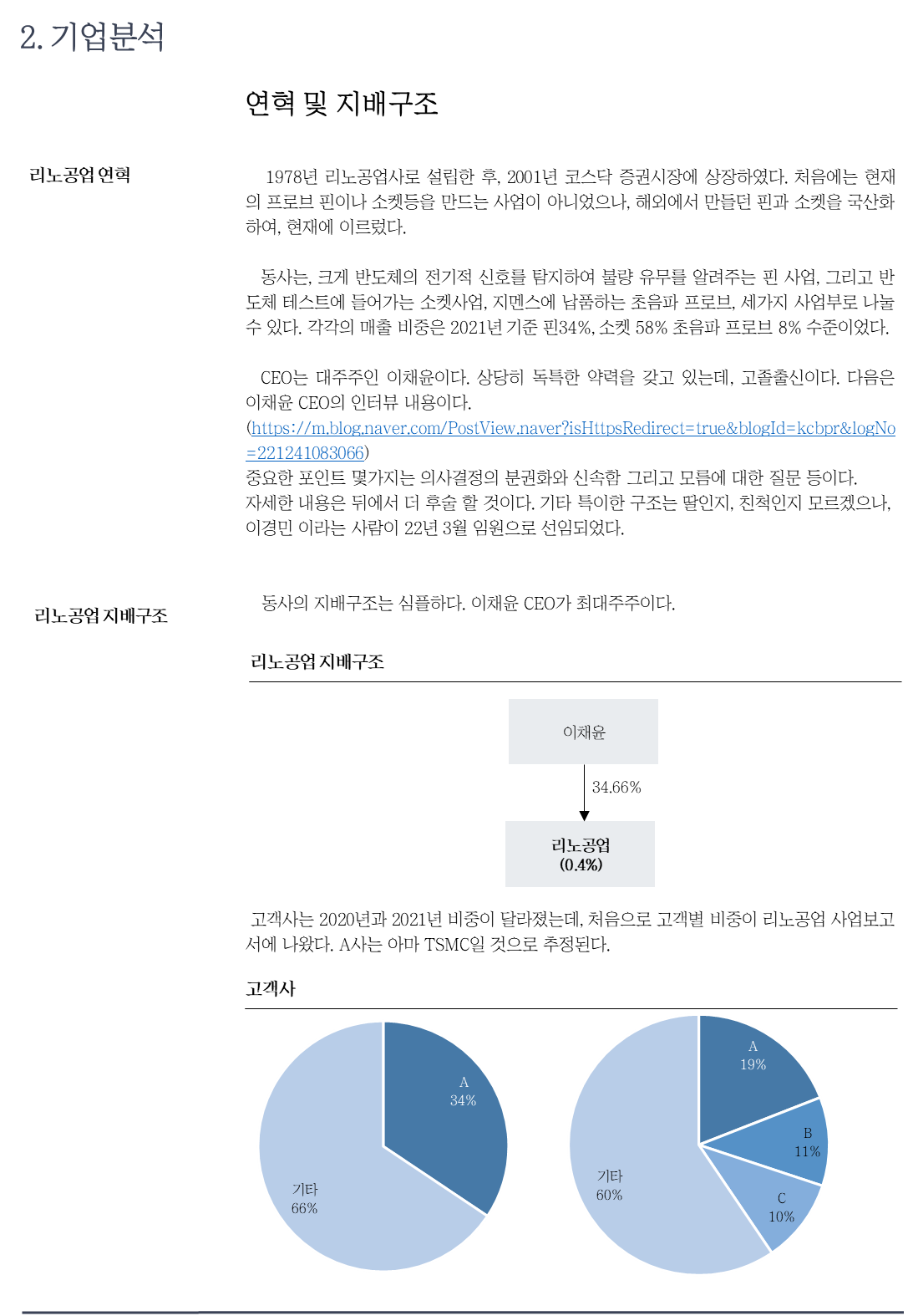 리노공업 기업분석 - 대주주 및 CEO 및 고객사