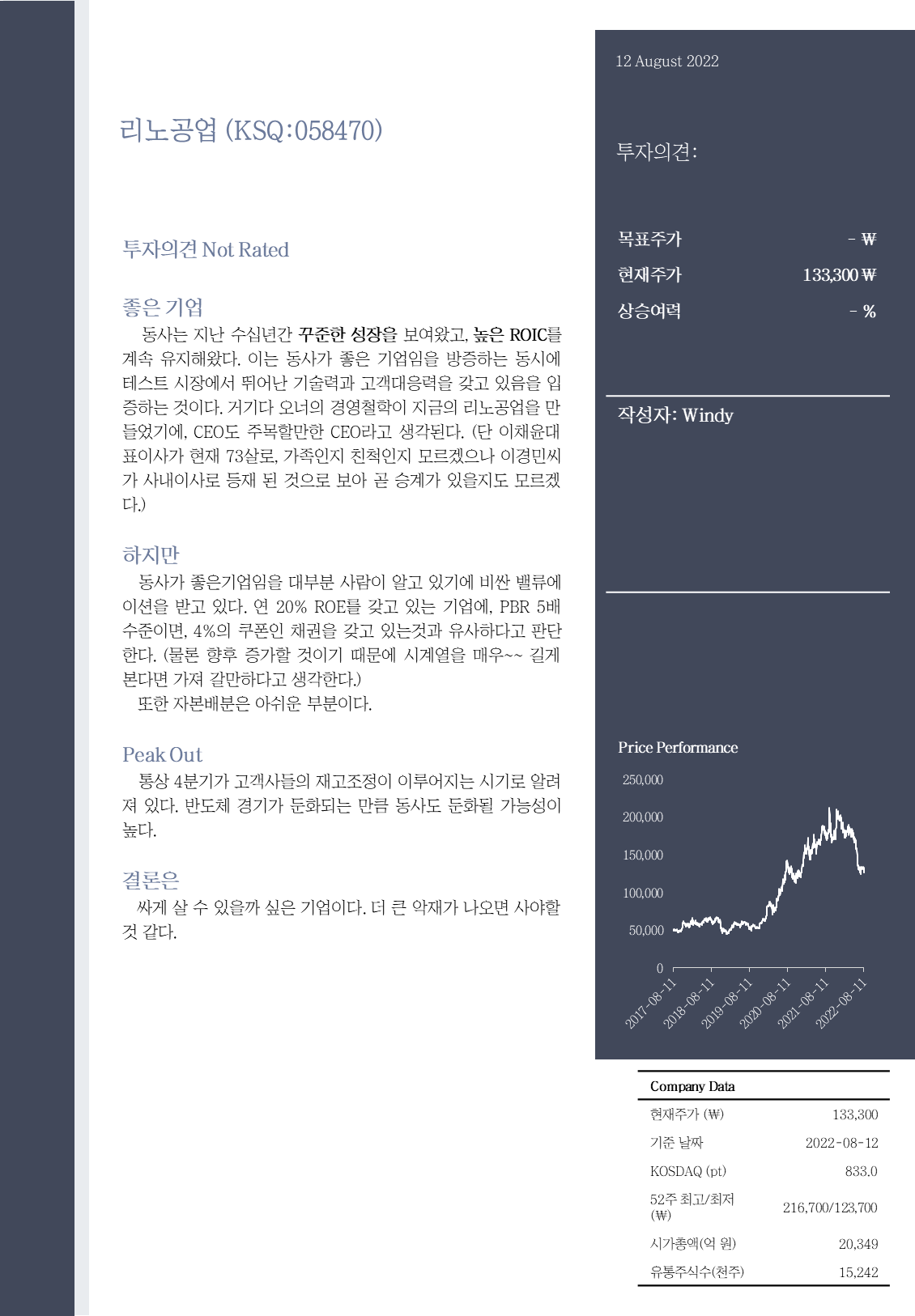 리노공업 기업분석 - 사업구조 및 주가 히스토리