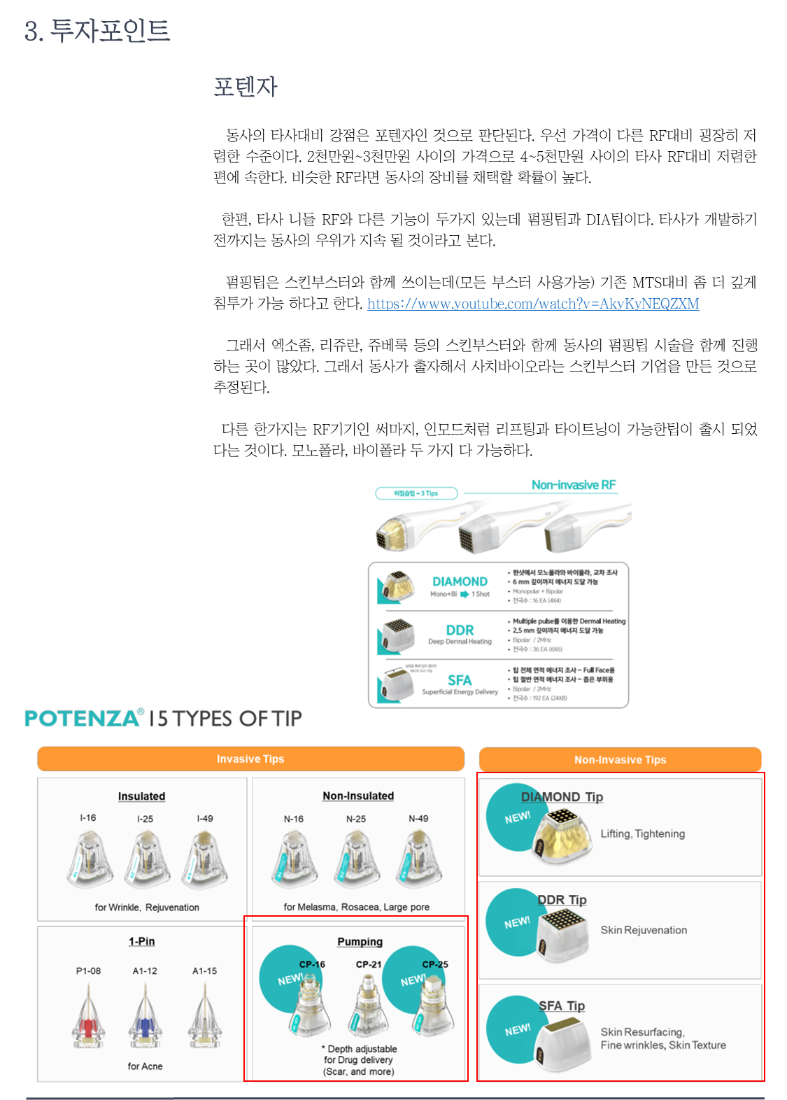 "생각없이 읽다보면 재미있는 금융지식!" 미용기기 사업중 기업 분석 전 각각 기기의 특징이나 시술에 대해 정리 몇몇 특징이 있는 기업이 보인다.