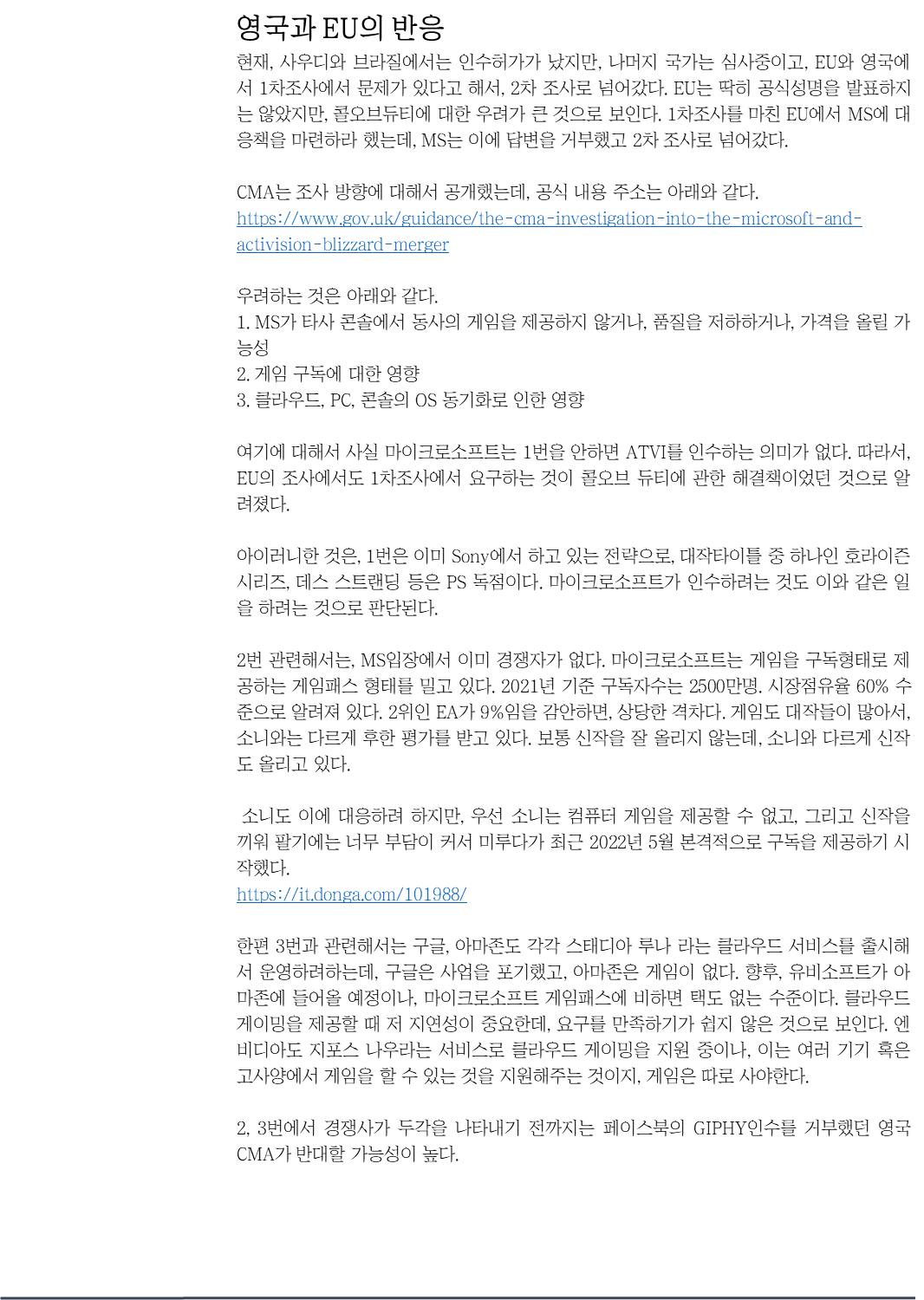 다시볼확률이 낮은 기업들/ATVI Activision Blizzard(NASDAQ.ATVI) 분석(M&A 차익거래 관점) - 22.11.10 by Windy 2022. 12. 21. ATVI_221110.pdf 0.29MB 반응형 공유하기 게시글 관리 Windy의 투자공방 저작자표시 (새창열림)