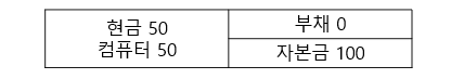 여기서 현금 50을 주고 컴퓨터 50을 사게 된다면