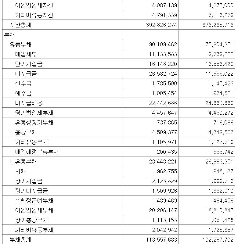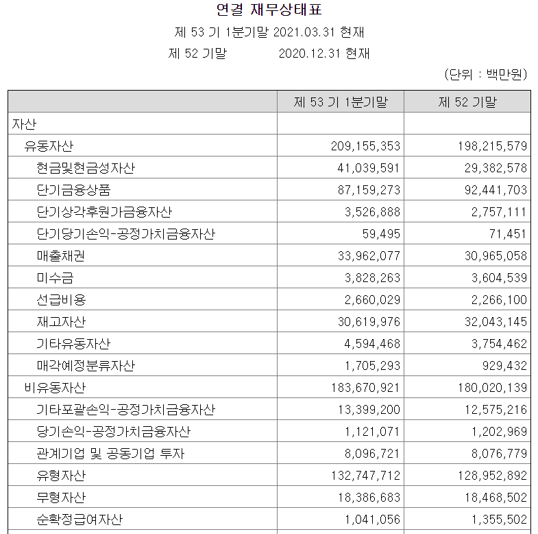 삼성전자 재무상태표를 잠깐 봐볼까요!?