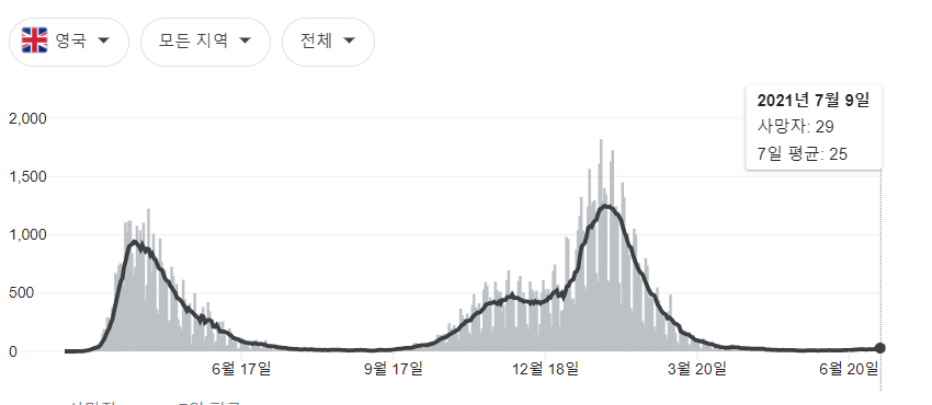그도 그럴 것이 영국의 확진자 수와 사망자수를 보면