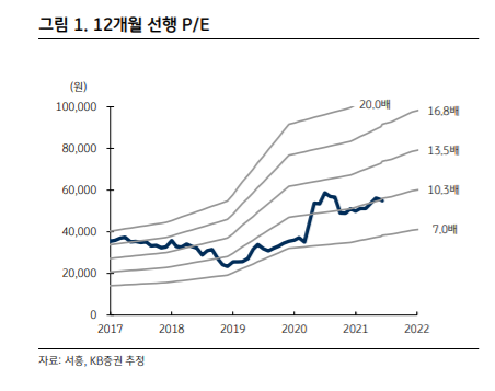 아래는 PER 밴드입니다. 이를 통해 과거(2017년)보다는