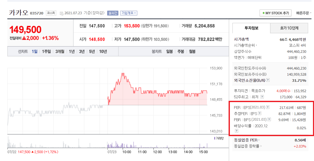 포스코보다 카카오가 PER가 높은 이유를 설명해주는 부분인데요!